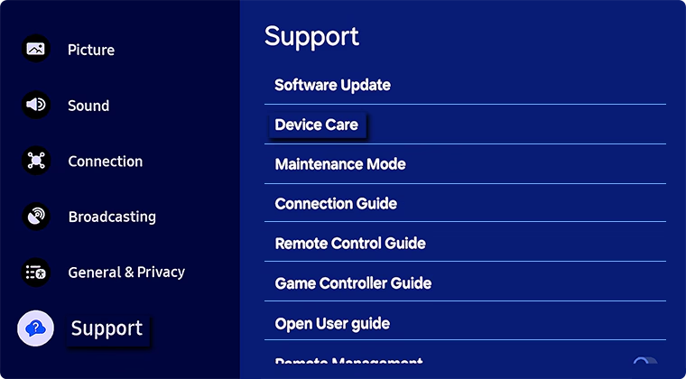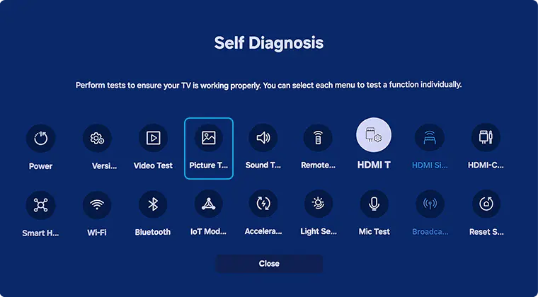 Hầu hết các dòng Smart TV hiện nay, đặc biệt là các lỗi màn hình tivi Samsung, đều được trang bị tính năng tự chẩn đoán hình ảnh. Tính năng này sẽ giúp bạn kiểm tra xem màn hình có gặp vấn đề về phần cứng hay không.