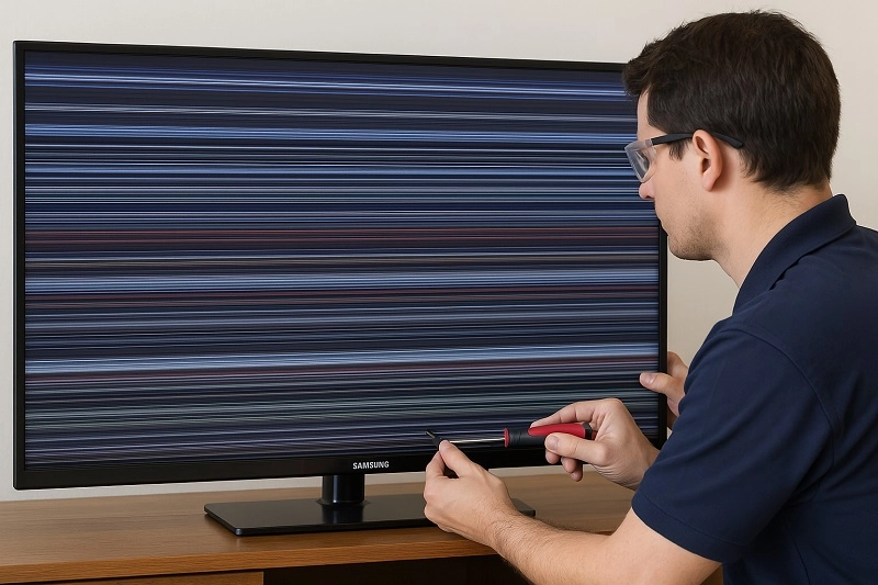 - Tiêu chí xác định: Để chắc chắn 100% lỗi xuất phát từ panel, kỹ thuật viên cần dùng máy đo xung chuyên dụng để kiểm tra tín hiệu hình ảnh. Việc chập một trong các vi mạch (IC) điều khiển cột hoặc hàng trên tấm nền sẽ gây ra các lỗi hiển thị cố định.